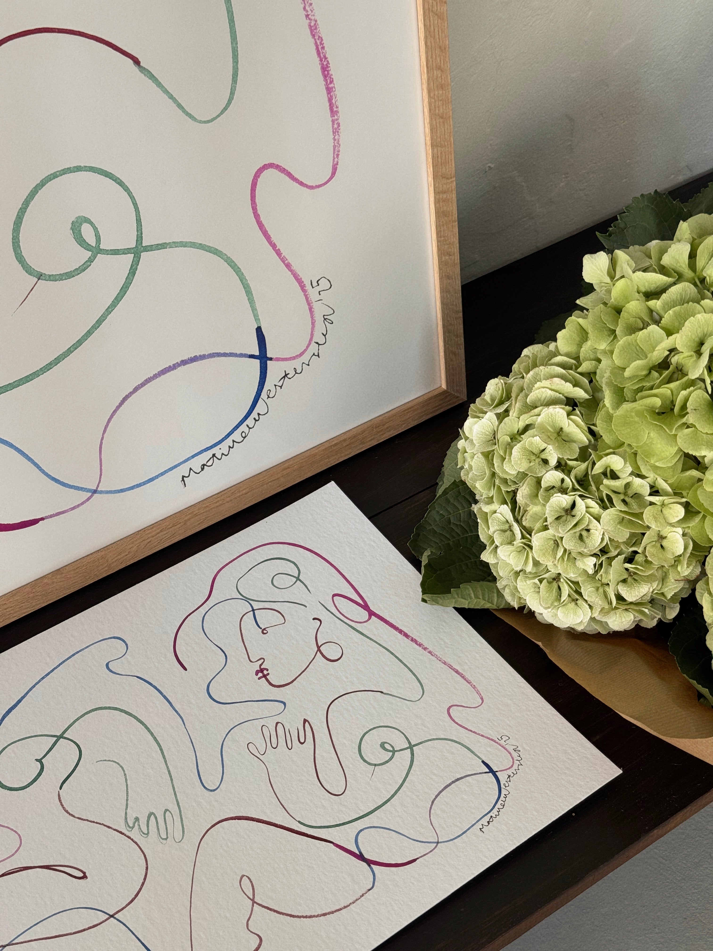 Trykkene produceres på et struktureret kunstpapir, som giver værkerne dybde og sjæl og fremhæver detaljerne fra originalen.