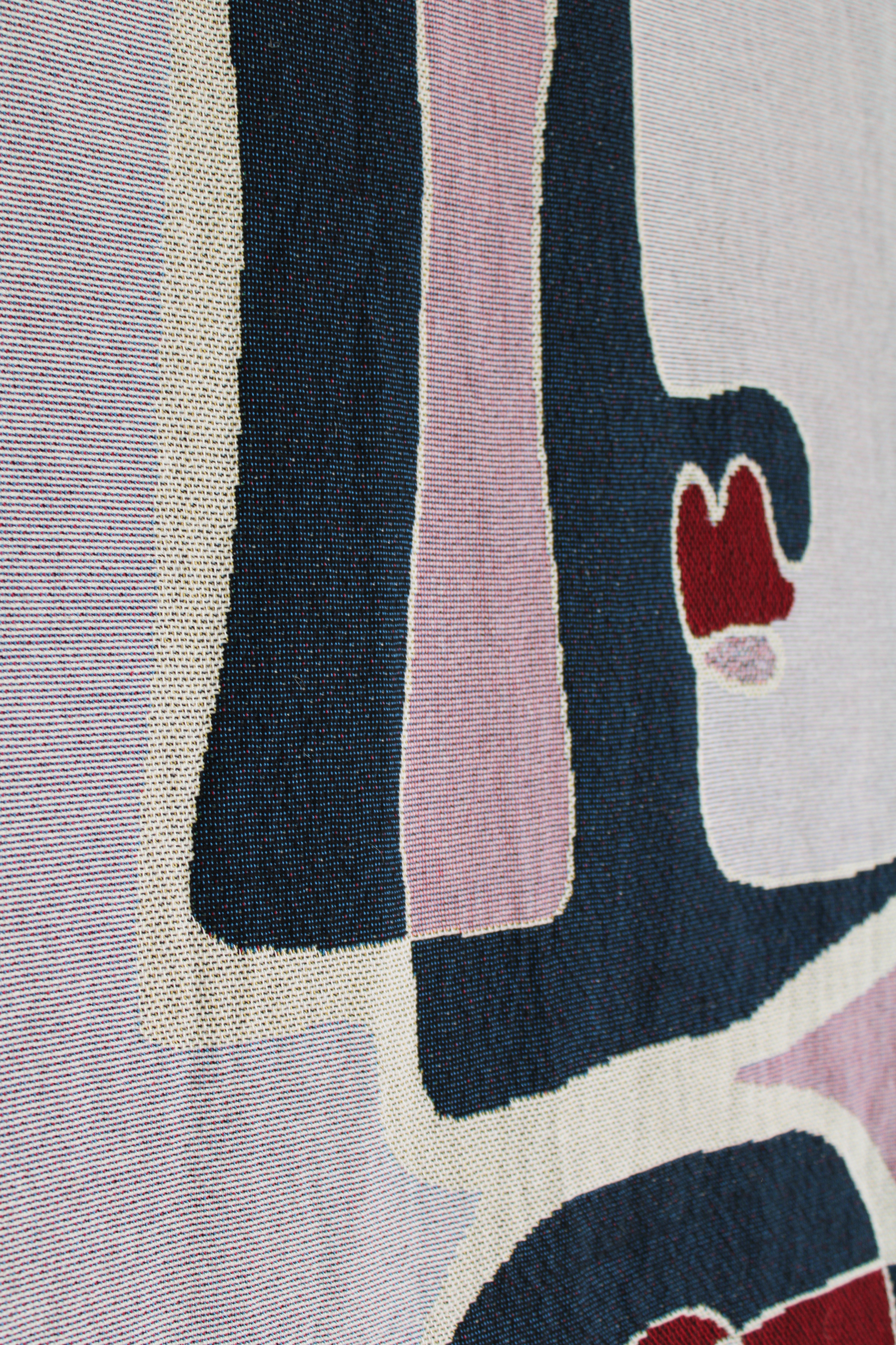 Lavet i farverne mørkeblå, sart violet, duset rosa samt detaljer i mørk rød